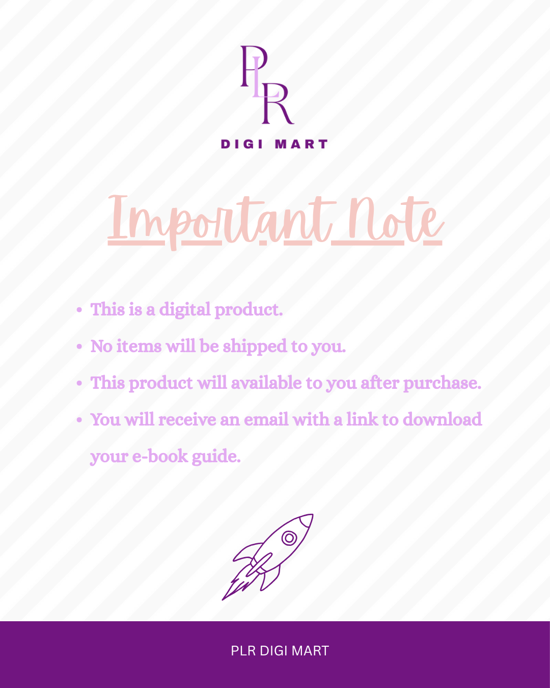 Important Note: This purchase includes a PLR license. You may rebrand and resell this guide as your own, but you may not copy my original designs, claim authorship of this version, or redistribute it for free. Full license terms are included in your download.